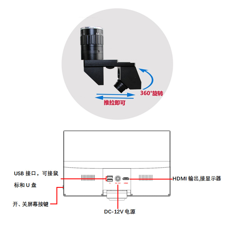 ATE-25DM高清2D/3D視頻電子顯微鏡 與11.6寸一體式顯示屏連接,操作方便可拍照錄像測(cè)量,存儲(chǔ)在U盤,無需電腦