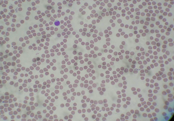 用特種玻璃鉛筆在血膜兩側(cè)畫兩條線,防止染液外溢。再將瑞氏染液(伊紅-亞甲基藍(lán))滴在血膜上,至染液淹沒全部血膜,染半分鐘。加等量蒸餾水(或緩沖液)與染液混合再染5分鐘。最后用蒸餾水把染液沖掉,用吸水紙吸干,自然干燥后,即可觀察。