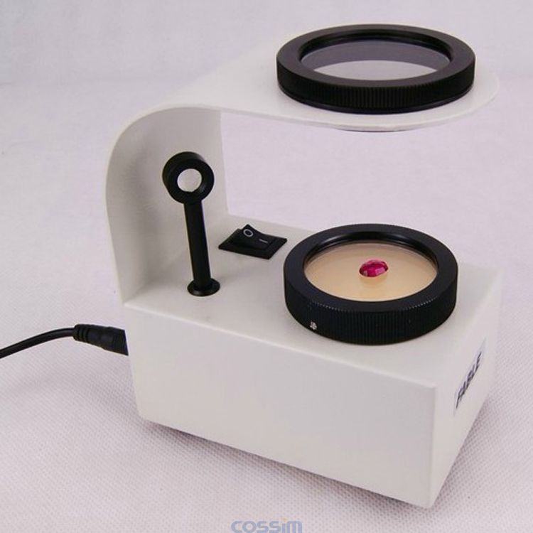 產(chǎn)品介紹偏光鏡主要于區(qū)分均質(zhì)寶石和非均質(zhì)寶石及晶質(zhì)(隱晶或微晶)集合體,鑒定寶石的異常雙折射現(xiàn)象,在特定情況下,借助錐樂鏡,可以觀察寶石的干涉圖,確定寶石的性 用途: 確定寶石的光學(xué)特征(均質(zhì)體、非均質(zhì)體、異常雙折射、集體消光) 確定寶石的軸性(一軸晶、二軸晶):利于干涉球 觀察寶石的多色性:使用單偏光(上下偏光片平行),轉(zhuǎn)動寶石觀察顏色變化性。 一、操作步驟 1、 擦凈寶石,打開光源 2、 調(diào)節(jié)上偏光片,使其與下偏光片正交(視域黑暗) 3、 將寶石置于玻璃載物臺上旋轉(zhuǎn)360度,從上偏光片上方觀察寶石明暗 4、 若為雙折射材料(轉(zhuǎn)動一周四明四暗),用干涉球找光軸,觀察干涉圖,定軸性 技術(shù)參數(shù)49mm大口徑偏光片,高20厘米 可旋轉(zhuǎn)載物臺,上偏光片可360度旋轉(zhuǎn)配錐光透鏡