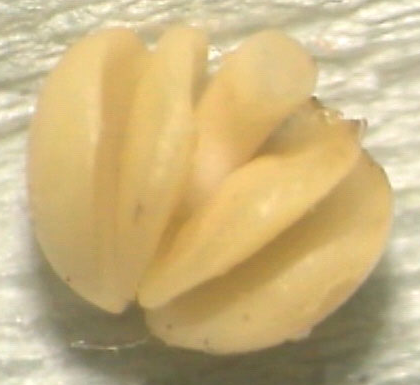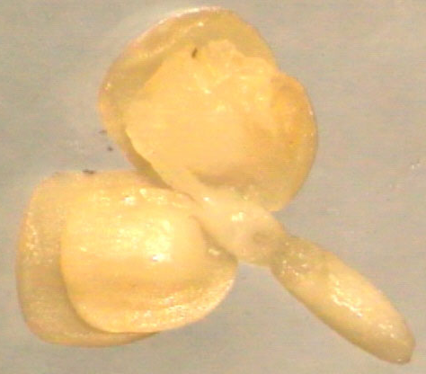 2、鑷子固定種子,雙面刀片小心在種皮上拉一個長的開口(注意不要割到胚);